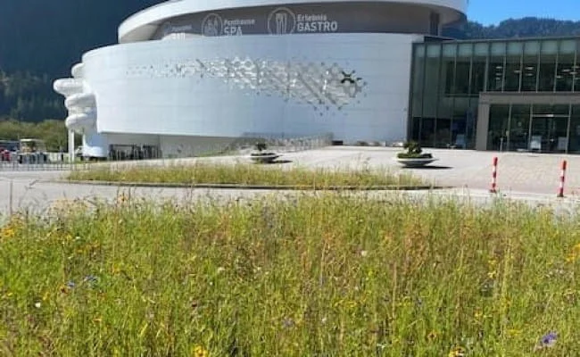 Beim Atoll Achensee wurde auf eine mehrjährige Schmetterlingswiese gesetzt: Jedes Jahr und zu jeder Saison erstrahlen so andere Schätze. Dreimal jährlich werden die Wiesen gemäht, einmal jährlich wird Saatgut ergänzt. Das Blumenwiesen erstrahlen so stets in einem anderen Gesicht.