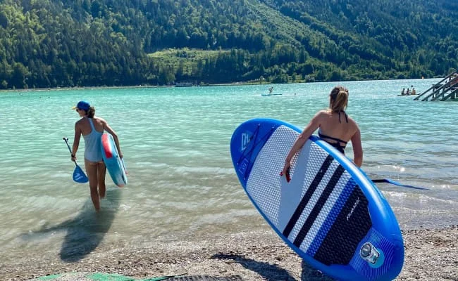 Im SEE-Bad des Atoll Achensee bietet der Verleih an der BEACH-Bar jedermann/frau die Möglichkeit dieses wunderbare Gefühl des Über-das-Wasser-Gleitens zu erleben. Es stehen neben Allround-Boards auch Touring-Boards und seit Sommer 2022 auch Yoga-Boards bereit.