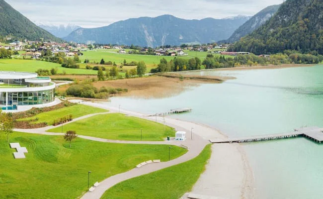 Das Atoll Achensee liegt malerisch eingebettet direkt am Ufer des größten See Tirols und eröffnet dir das ganze Jahr über zauberhafte Panoramablicke auf den Achensee sowie das majestätische Rofan- und Karwendelgebirge. Auf über 50.000 Quadratmetern beherbergt es vielfältige Erlebnisinseln und ist somit ganzjährig und bei jedem Wetter der ideale Ort für eine Fülle von Aktivitäten, sei es Schwimmen, Baden, Entspannen, Saunieren, kulinarische Genüsse erleben, Trainieren, Klettern, Eislaufen oder schlichtweg das Leben in vollen Zügen genießen.