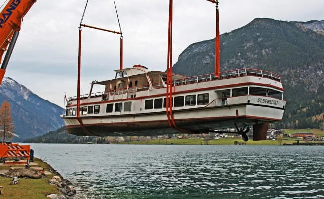 Hast du dich schon einmal gefragt, wie ein alter Dampfer zum Spielplatz wurde? Kaum zu übersehen steht es prominent im SEE-Bad des Atoll Achensee: das Spieleschiff St. Benedikt. Der Dampfer ist in seiner Grundform noch im Original von 1959 erhalten und hat unzählige Runden am Achensee gedreht, bevor es beim Atoll Achensee „gestrandet“ ist.