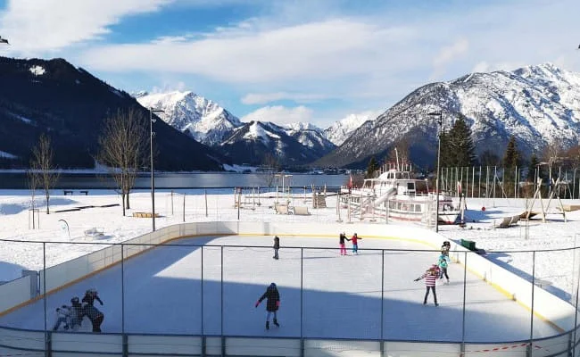 Der stetig wechselnde Wasserpegel ist auch die Erklärung warum der Achensee nicht mehr großflächig und über deinen längeren Zeitraum gefriert. Nur noch während sehr langen Kälteperioden mit wenig Veränderung des Wasserpegels lässt die Wasseroberfläche erstarren. Auch wenn es verlockend ist: Das Betreten der Eisfläche gefährlich und sollte vermieden werden. Für Eislauffans wurde dafür der Eislaufplatz direkt am Atoll Achensee geschaffen…perfekt um deine Runden am Eis zu ziehen oder eine Partie Eisstockschießen zu wagen.